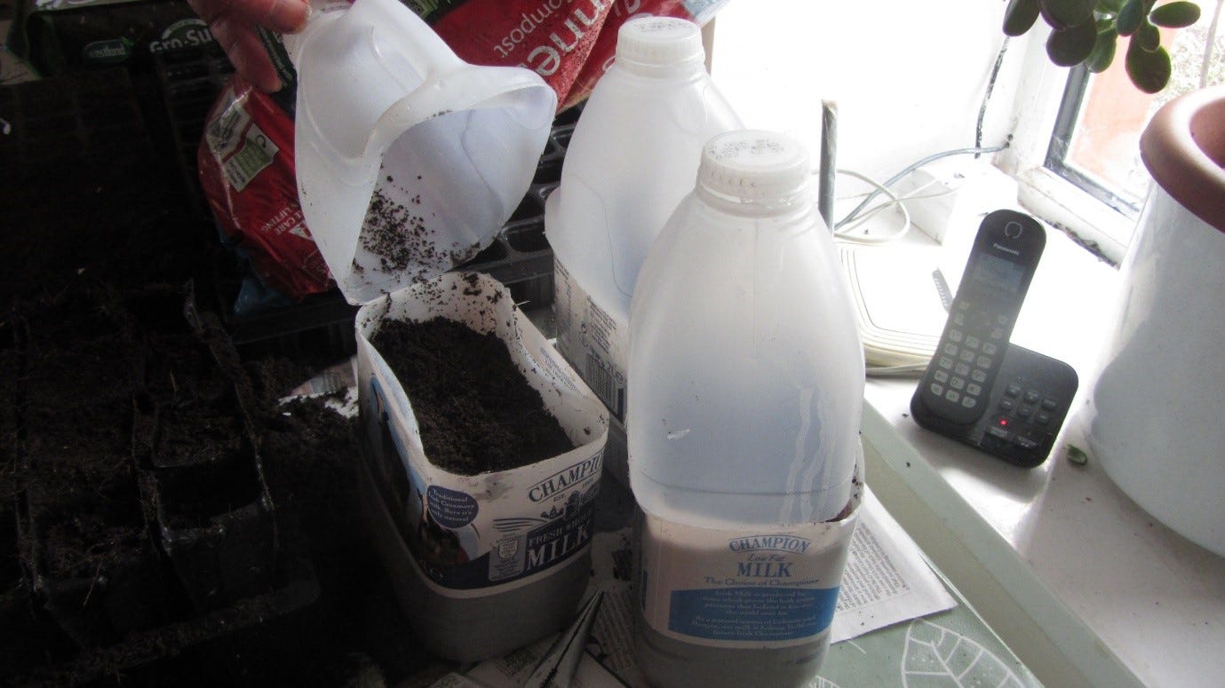 I love to recycle where I can. So, this week on YouTube there was the invitation to recycle plastic milk containers. They are not the prettiest of things, but I will have a go at planting lettuce seeds in them and see how they grow.
