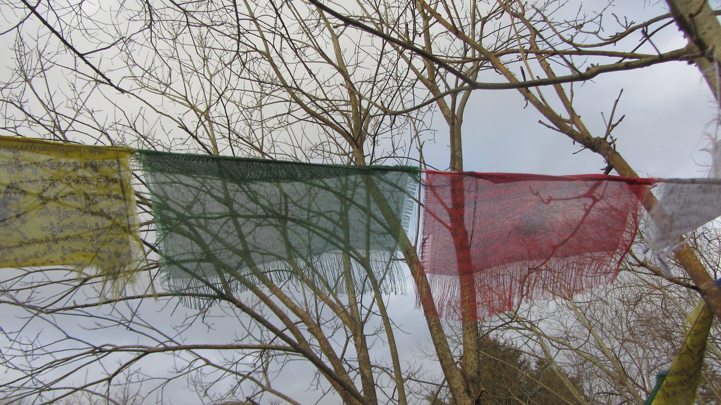 • Prayer Flags or Ribbons: Tie colorful ribbons, fabric strips, or small bells to the branches to symbolize prayers carried by the wind. In Stewart’s Grove we have surrounded the grove with Tibetan prayer flags in remembrance of Stew who I met when we where both engaged Buddhists in London.