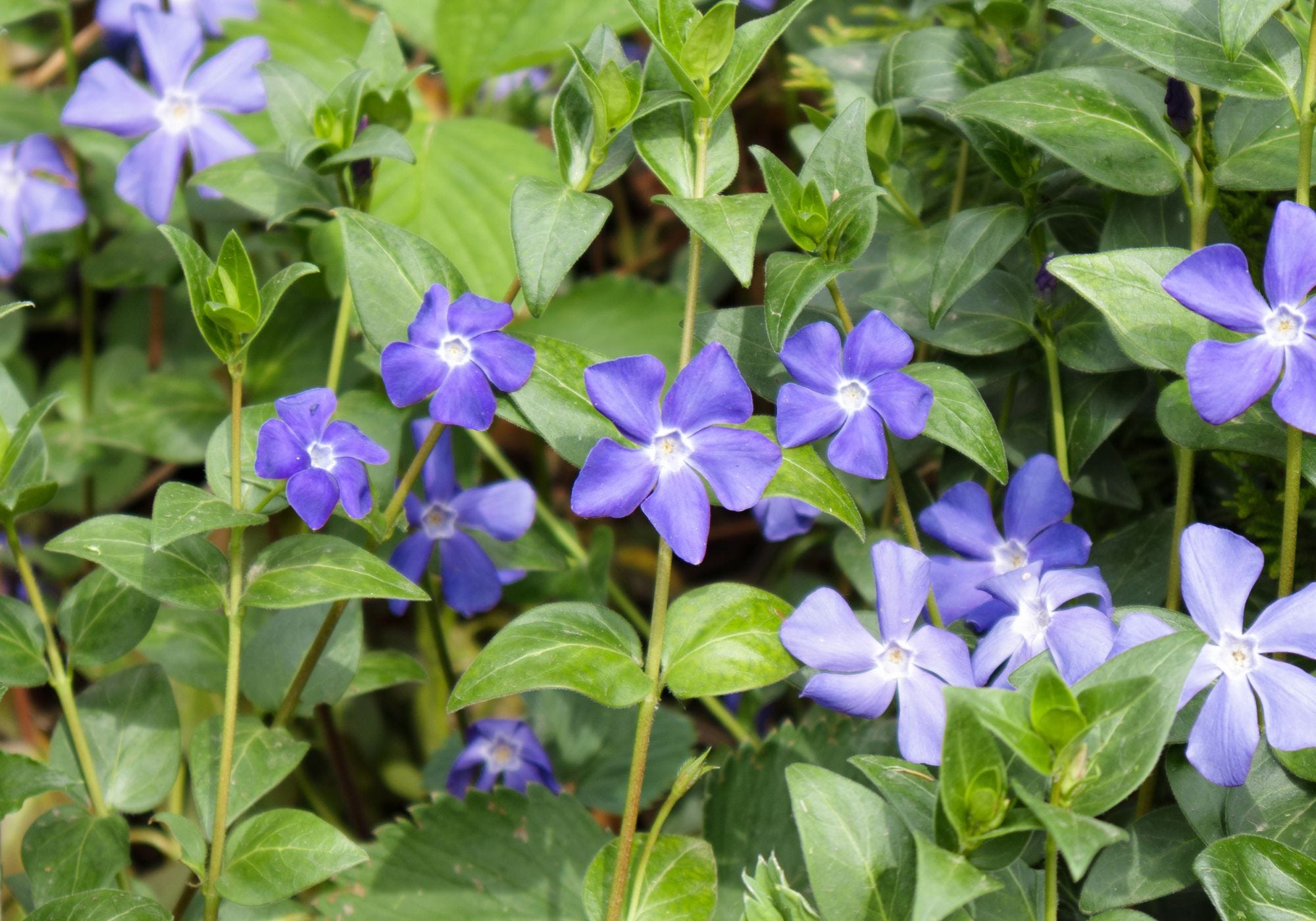 I will plant the hill with Nepeta ‘Junior Walker’ as a substitute, which is quite similar and works well here in Cordressagagh. What is doing extraordinarily well on the slope is Vinca which is now in full flower and will remain that way until late autumn or fall.