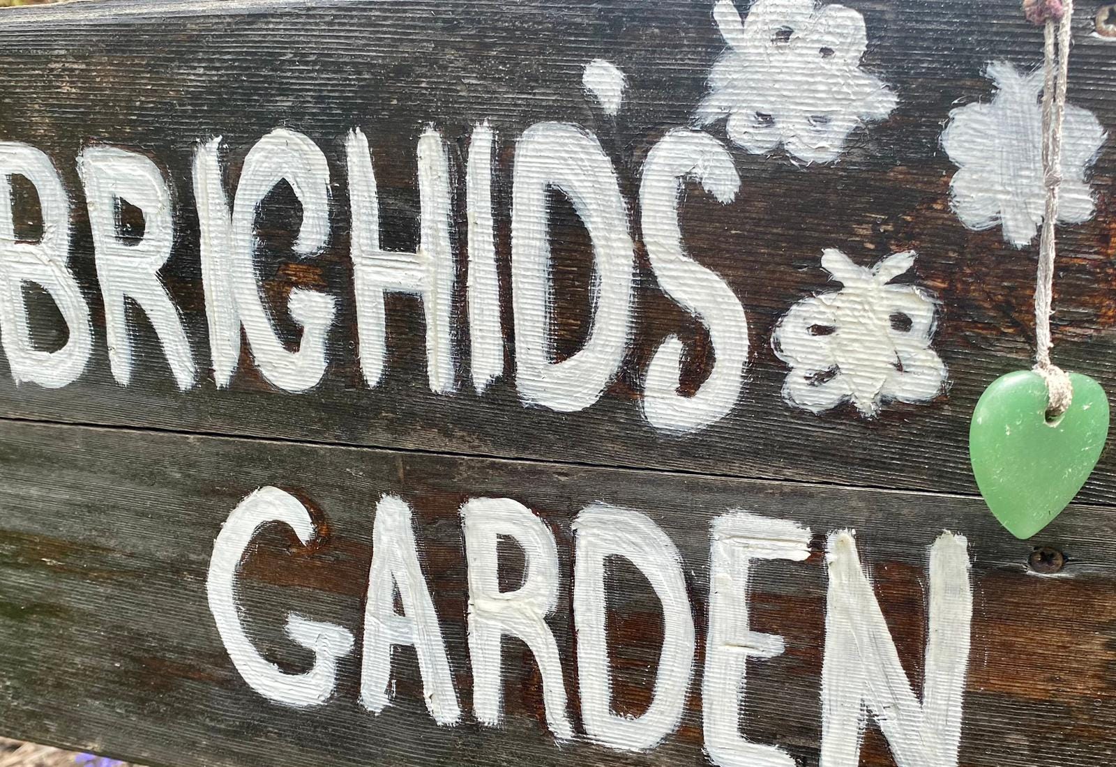 I have an Aventurine heart that I wear constantly around my neck. On occasion the leather strap breaks. So, I was surprised to have Bee tell me that Lilly found my heart and that it was now tied to the signpost in the St. Bridget’s Garden.