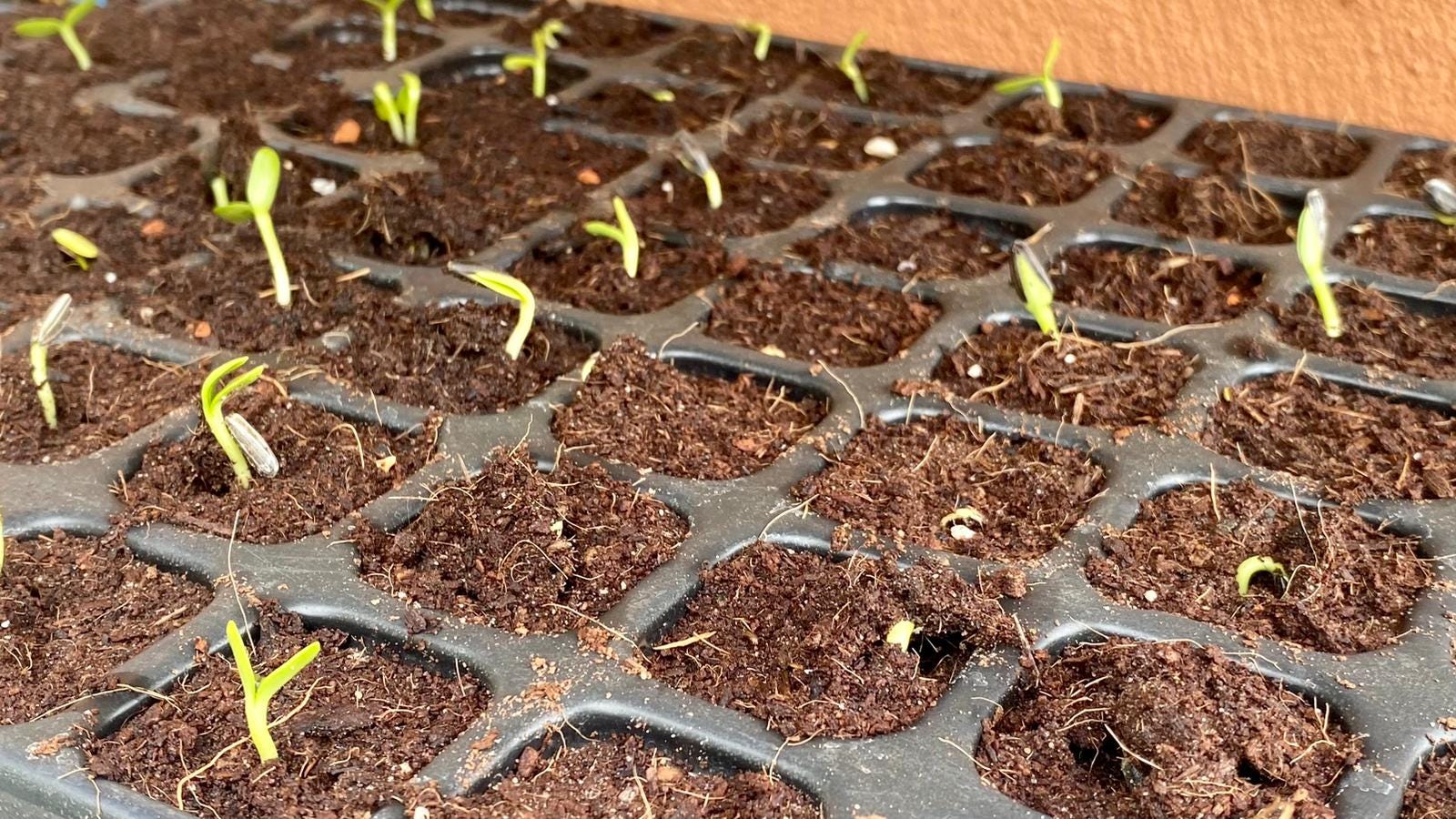 As we stand together by the wheelbarrow with the seventy-two seed tray module, she holds out her tiny hand to receive some of the giant sunflower seeds. I show her how to make a small indent in one of the module squares, gently place a sunflower seed inside, cover it with soil, and pat it down with care.