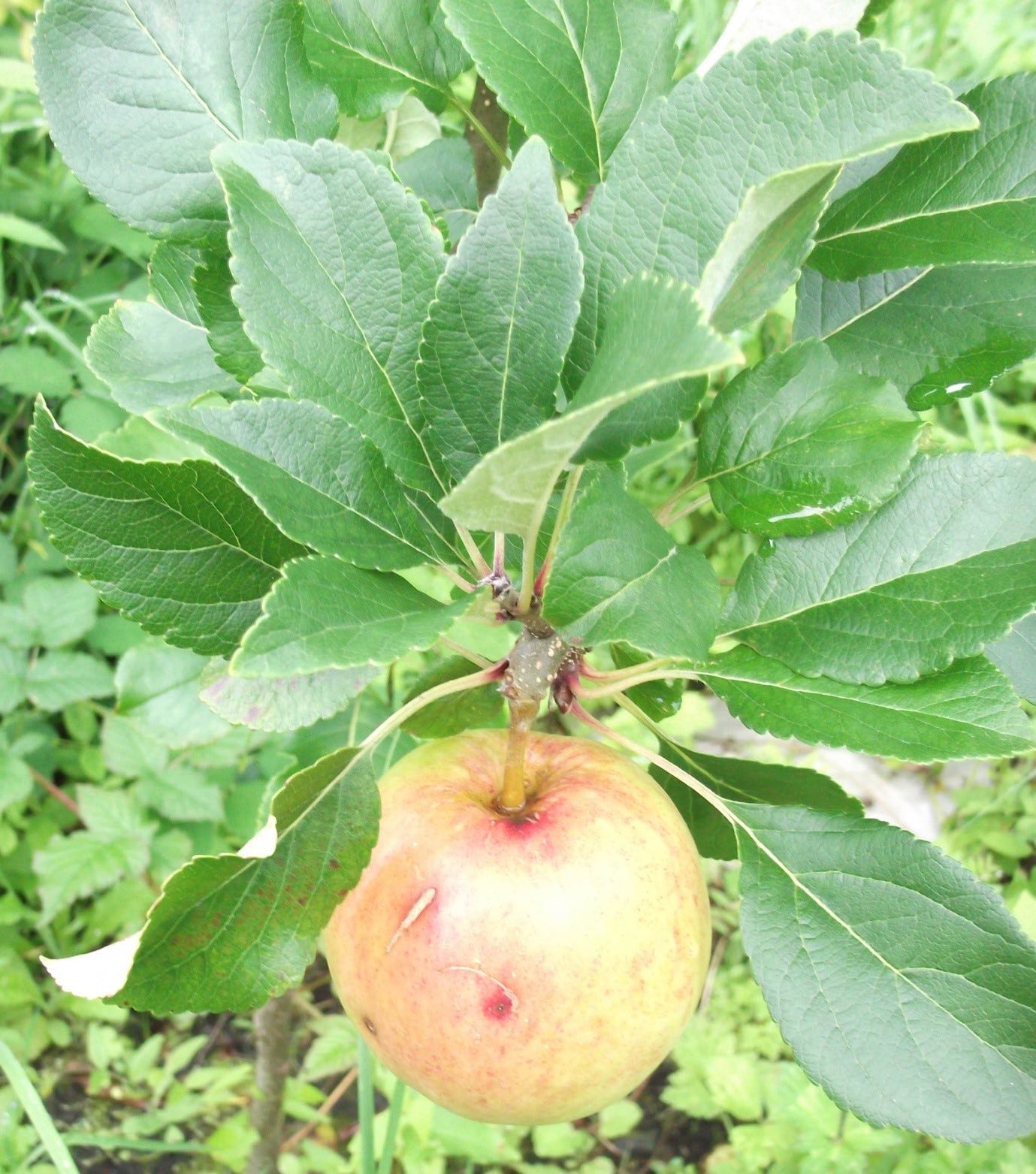 Yesterday (Monday) I walked through the weedy orchard to find a single apple on one of the apple trees – James Grieve. Its such a delight to find produce on a tree that you were instrumental in bringing to fruitage.