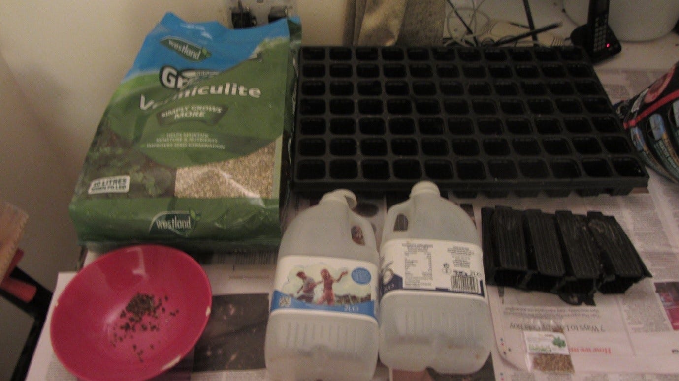 The forecast for much of this week is for rain so I am planning to sow some seeds. The above is the living room table laid out in preparation for this endeavor. I have a 72 module seed tray which is of sturdy construction, and I plan to plant up this tray with three types of onion seed. For this purpose, I will be using tweezers or the head of a match that is dipped in water. Once these are planted, I will cover them with the lightest covering of vermiculite.