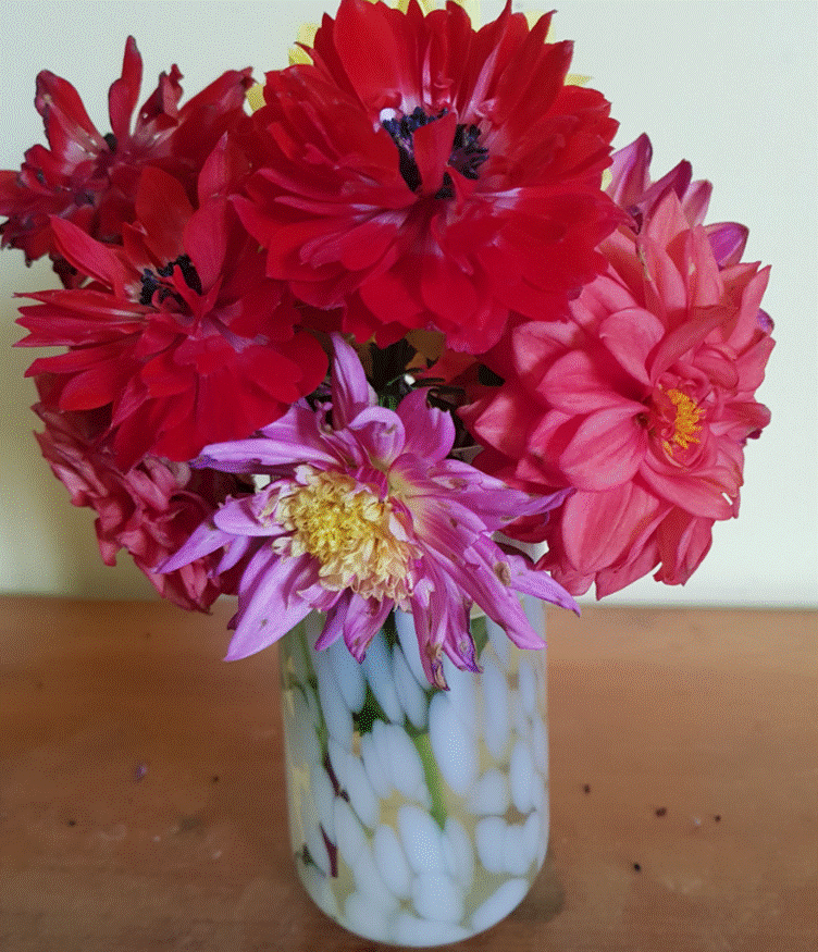 Bee is slowly recovering from a cold that means she takes two steps forward one step back. She wanted to cheer herself up, so she went into the garden to picks flowers. The picture above is what the garden gifted her. It’s now the third week in November and the garden keeps giving. By the plastic bin where I keep the bird seed there now three yellow roses in flower. I planted this rose years ago in remembrance of a friend Dennis. It was sold as a purple rose, and I bought it because purple has a connection to dentists which Dennis was. There is also the last of the sunflowers and one is even beginning to come into bud. Cordressagagh seems to have a strange microclimate where we are one month behind in spring and continue to grow for a month when other gardens are asleep.