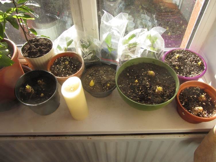 On the windowsill in the corridor, I have my three pots of coriander growing. The seem to be coming on and they can be added to a curry sometime soon. I tried to make half a bed dedicated to growing herbs last year, but they seem to have been crowded out by some of the flowers that I included their which I think were a combination of cosmos (Soul White) and giant sunflowers. I am going to build a herb bed using railway sleepers at the back of the cottage. It is north facing but gets enough light throughout the day. It will be close to the house rather than having to take a trip down into the lower reaches of the garden.