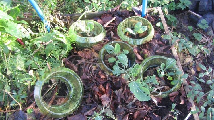 In the picture above you can see red clover which I will allow to cover the raised bed as a green manure and dig it in in the spring.